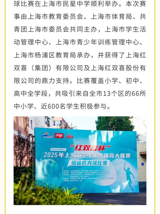 “红双喜杯”2025年上海市学生阳光体育大联赛团体匹克球比赛圆满落幕